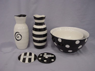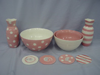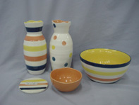 of assorted items (bowls, vases, coasters, salt/pepper shakers,